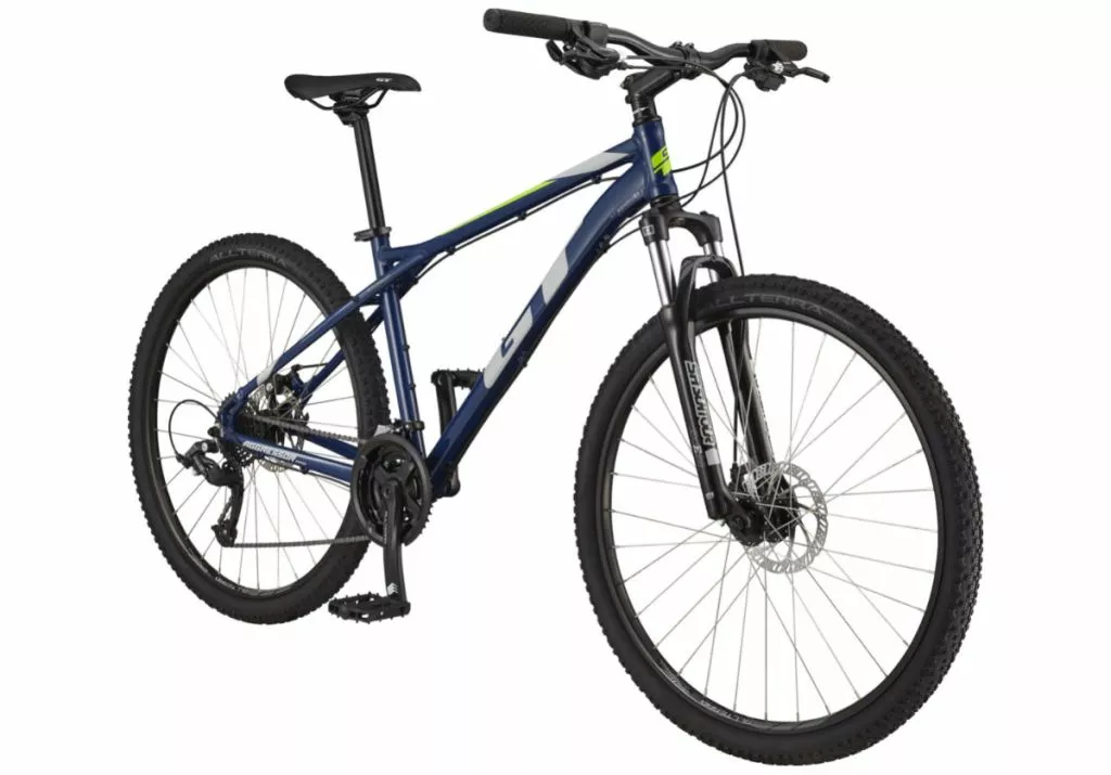 First, the frame is made from aluminium. It also features GT’s iconic “triple-triangle” design.