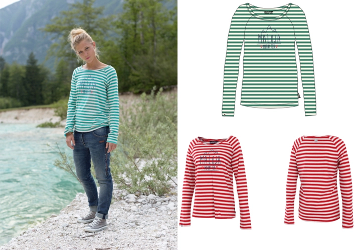 Longsleeve shirt with u-boat neckline made of summerly striped Single Jersey with a charming MALOJA Mount Ten logo print on front.
