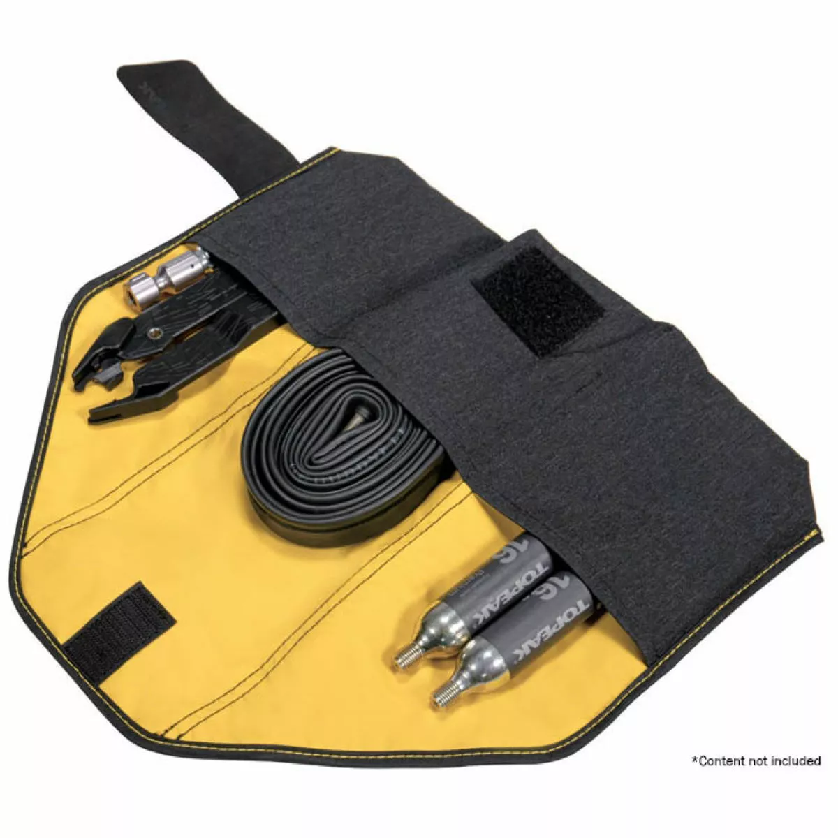 This tool roll features a durable, water repellent and stain-resistant coating to keep contents dry while being easy to clean. Plus, it’s held in place securely with a dependable strap, which provides tool-free mounting to frame tube, seat post or to saddle rails.