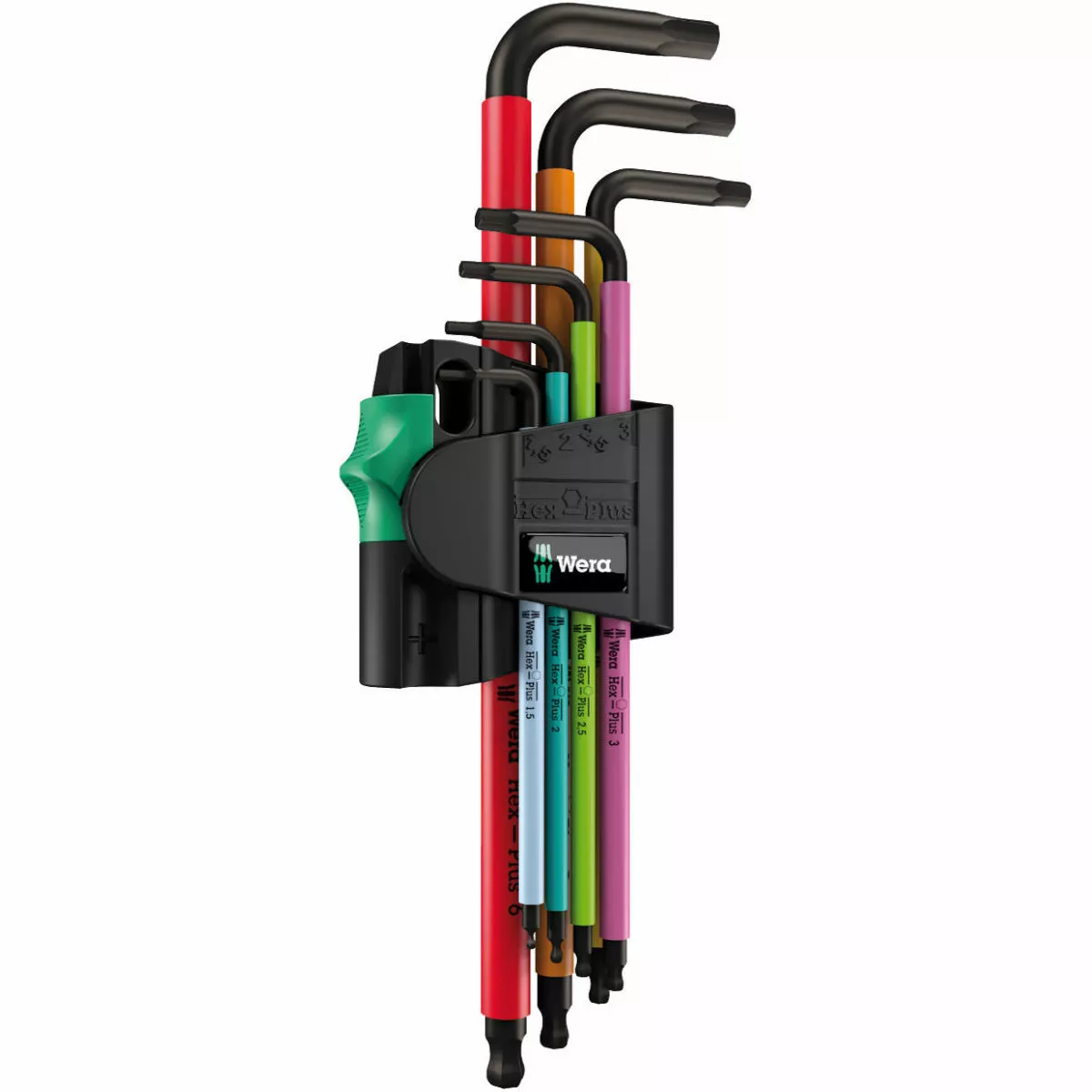 High quality L-keys out of stainless steel for hexagonal socket screws by Wera. Stainless steel prevents the transfer of extraneous rust. The Hex-Plus profile offers a greater contact surface in the head of the screw.