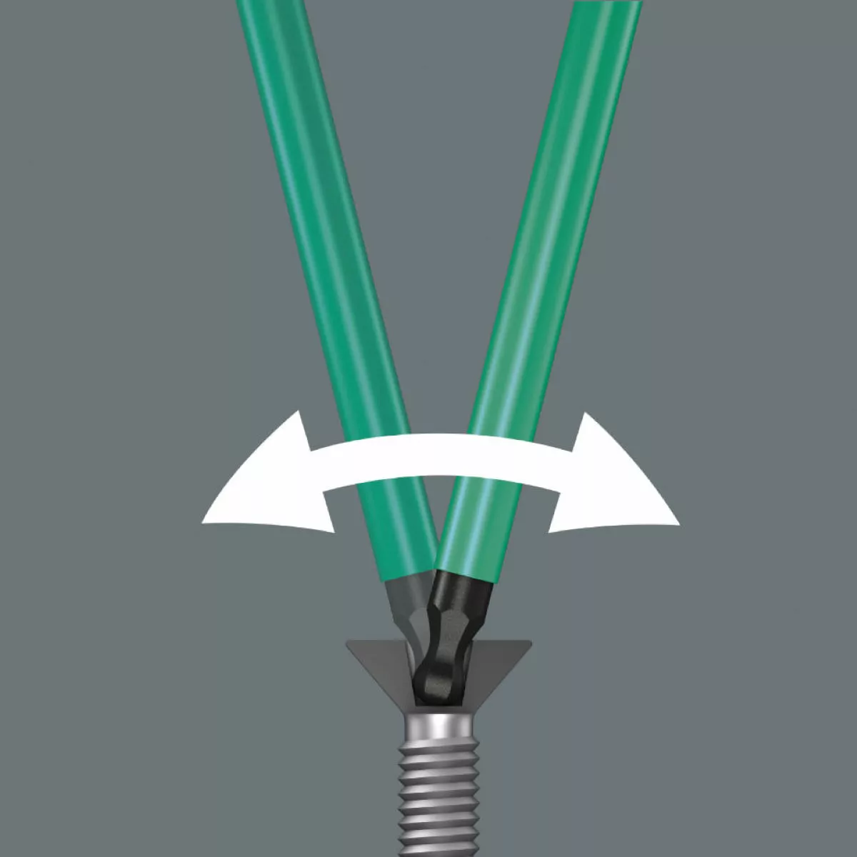 The notching effect is therefore reduced to a minimum and damage to the screw head is more or less eliminated. Come with hex ballpoint on the long arm: the ballpoint drive profile means that it is possible to swivel the tool axis away from the screwdriving axis, thus enabling around the corner screwdriving.